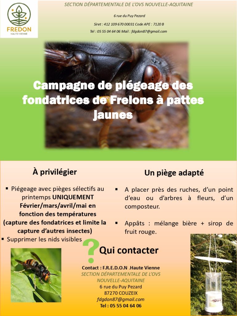 Afin de limiter la prolifération du frelon à pattes jaunes et de protéger les colonies d’abeilles, une campagne de piégeage des fondatrices est mise en place au printemps.