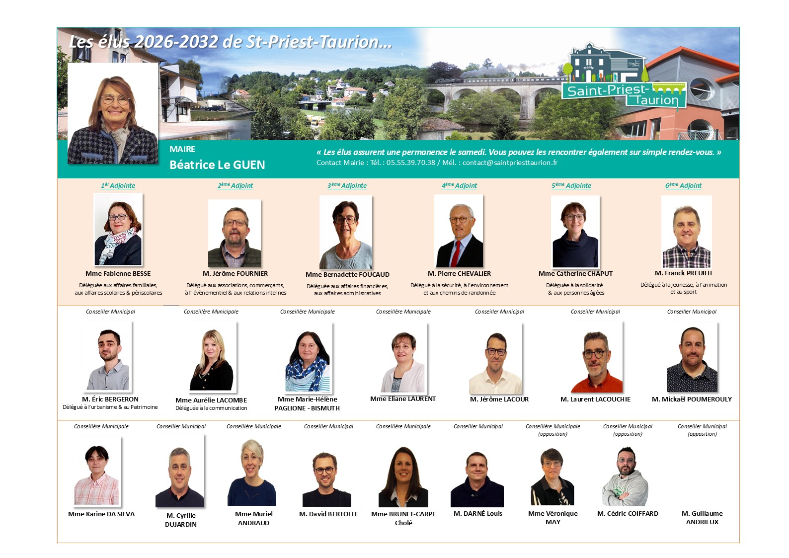 Outre leurs rôles au sein des commissions municipales, les élus de St-Priest-Taurion représentent les intérêts de la commune et de ses habitants auprès de divers organismes :