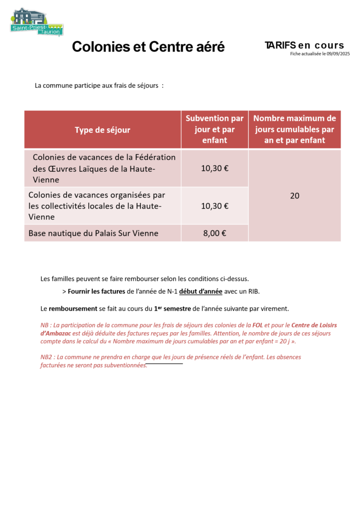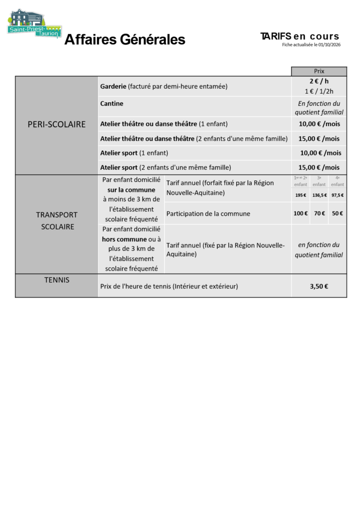 - Tarifs municipaux